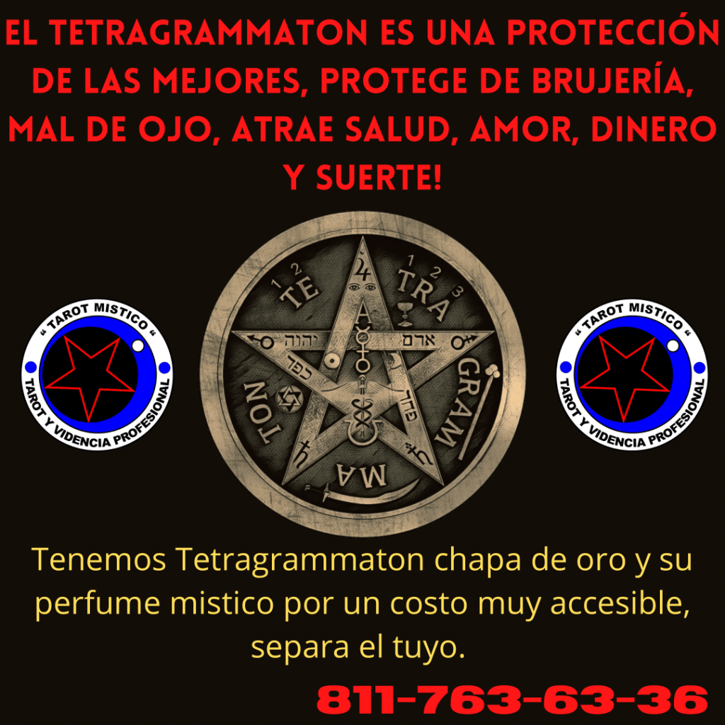 El Tetragrammaton o pentagrama mágico es una de las mejores protecciones, eficaz contra envidia, maleficios, atrae la salud, el amor, el dinero y la suerte, en Tarot Mistico tenemos el kit de Tetragrammaton chapa de oro, perfume de pentagrama, debidamente consagrado para ti, separa el tuyo al 811-763-63-36