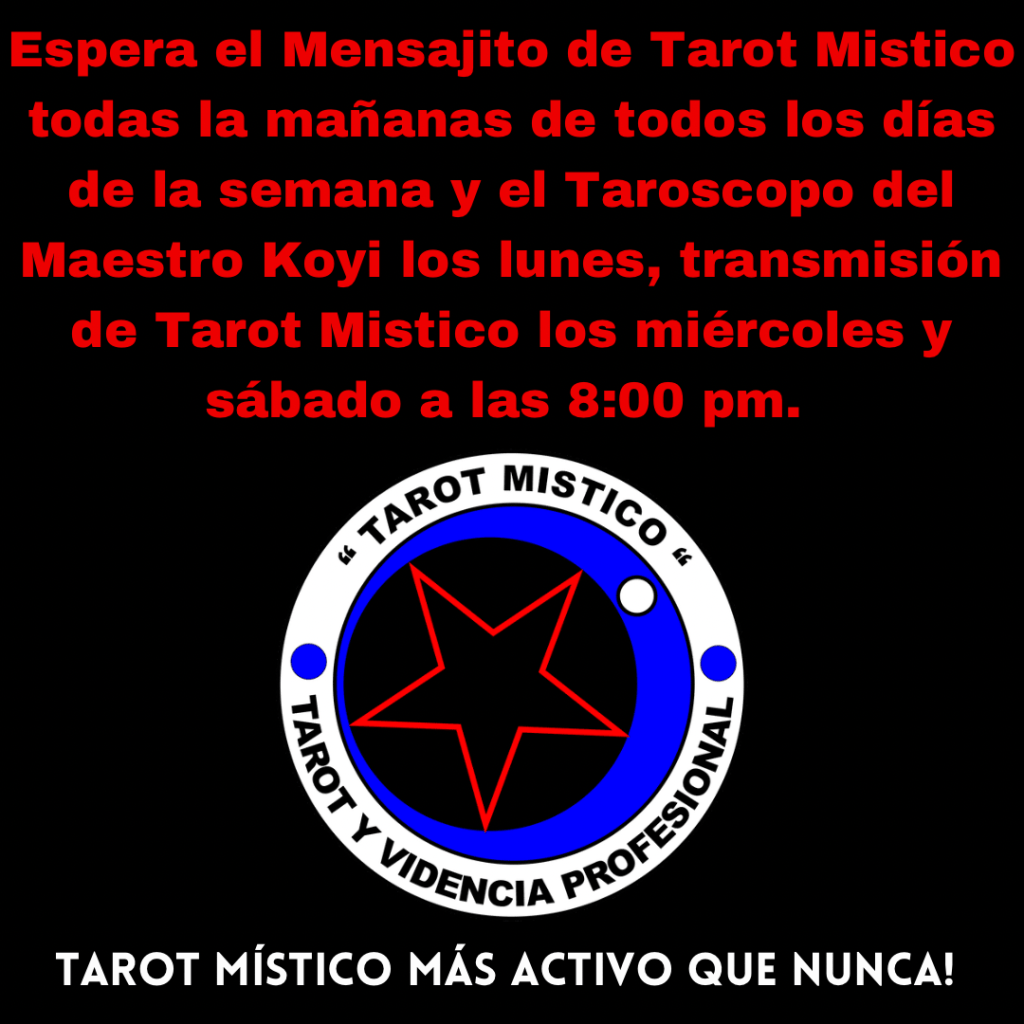 Es nuestro deseo el servirte mejor, hicimos una consulta pública sobre si querían tener mensajito del tarot mistico todos los días de la semana, o si querían los taroscopos del Maestro Koyi, pues por votación quisieron ambos y así va a ser, por qué tu opinión es importante, a todas la personas que opinaron por Instagram y Facebook les damos las gracias, y los esperamos en Tarot Mistico, bendiciones!!!